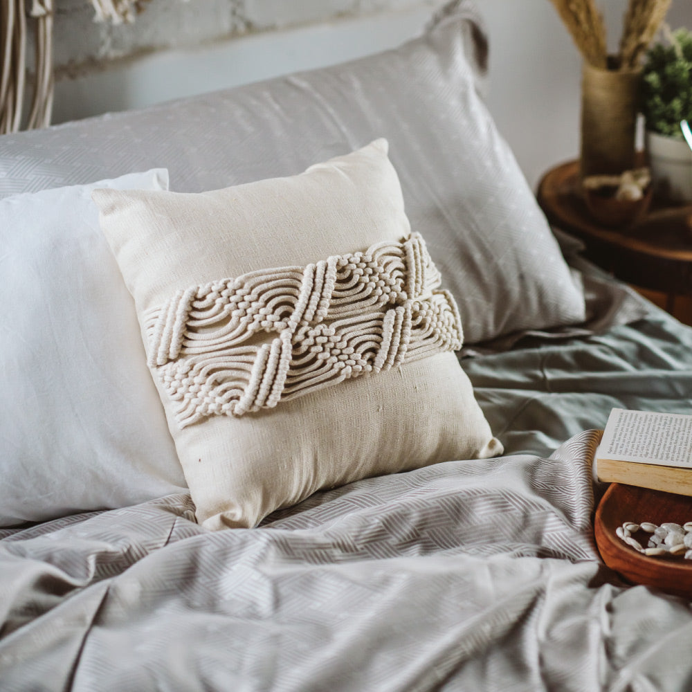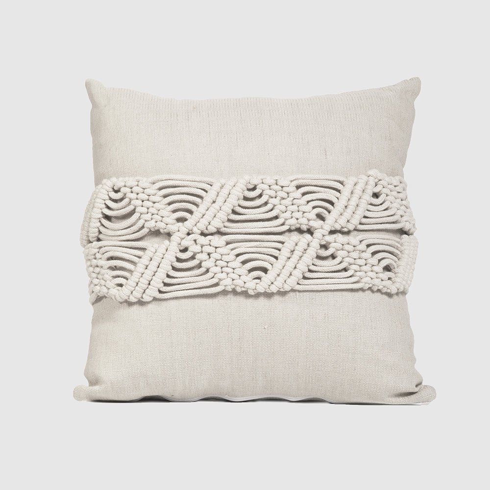 تتميز وسادة أمبر المكرمية بتصميم رقيق من الحبال لمظهر بسيط ومميز!