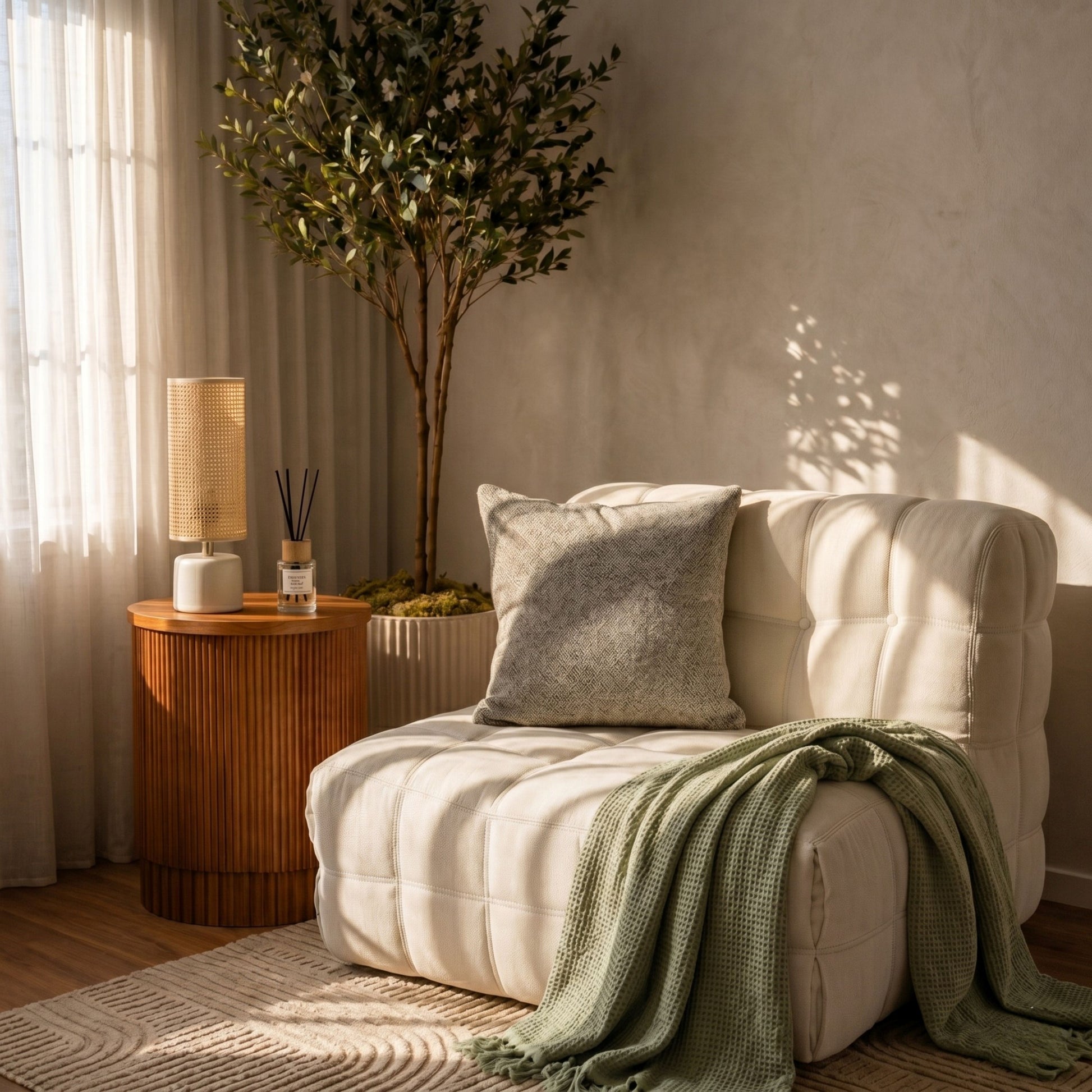 مثالي لغرف المعيشة وغرف النوم على حد سواء، ويتناسب تصميمه المدمج بشكل جميل مع الزوايا، مما يحقق أقصى استفادة من مساحتك دون المساومة على الراحة. بسيط، وجذاب، وأنيق بدون عناء، إنه مقعدك المفضل للاسترخاء اليومي.