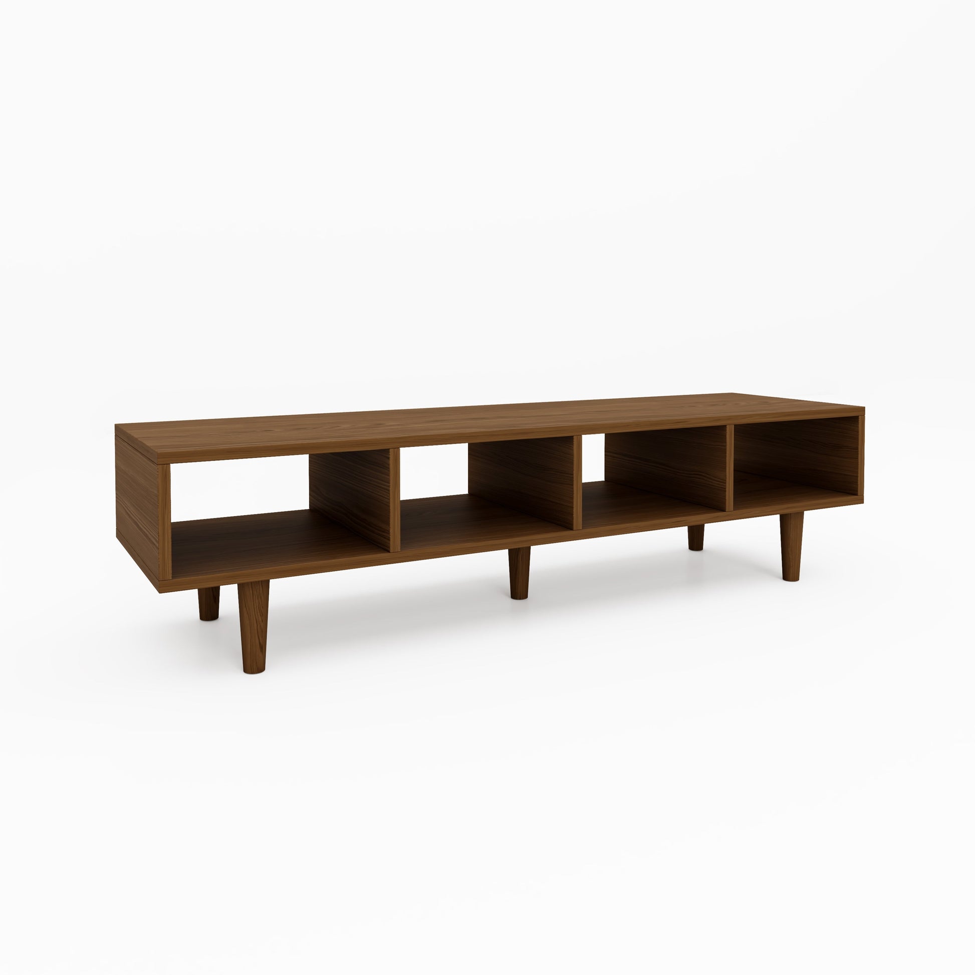 Areo TV unit combines sleek modern design with natural charm, thanks to its wood legs.The warm wood tones add a touch of organic elegance, making it a versatile addition to any living room.